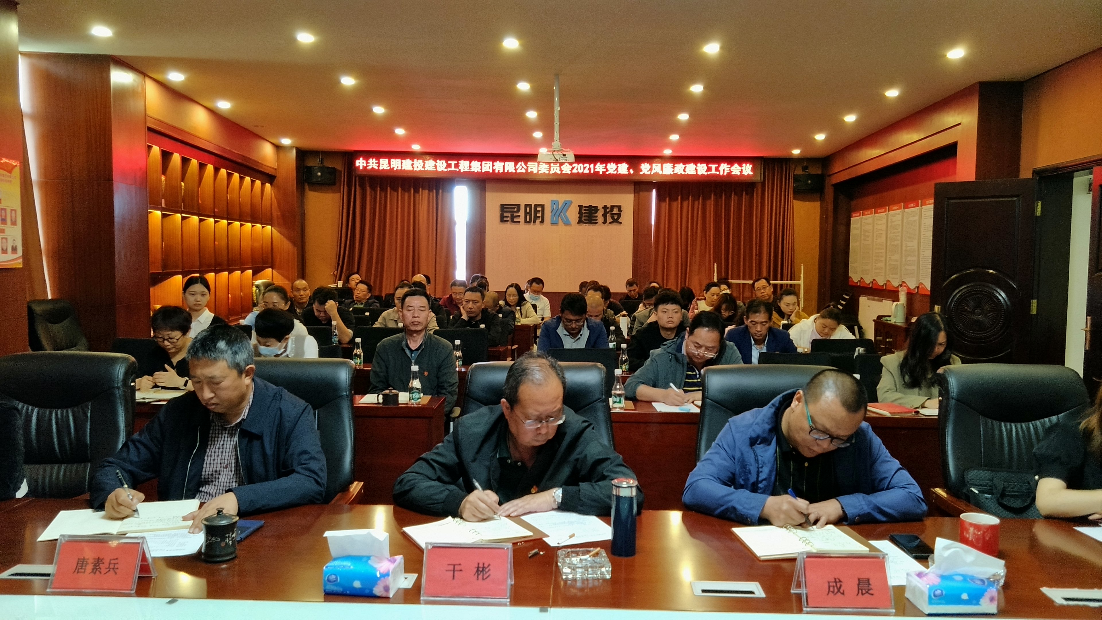 公司黨委副書記、紀委書記薛春鋒主持會議,昆明建投公司黨政領導班子成員、各部門負責人、各黨支部書記、委員、黨務人員,各分(子)公司經理共59人參會,交投公司黨群工作部李曉妍、郭旭到會指導工作。